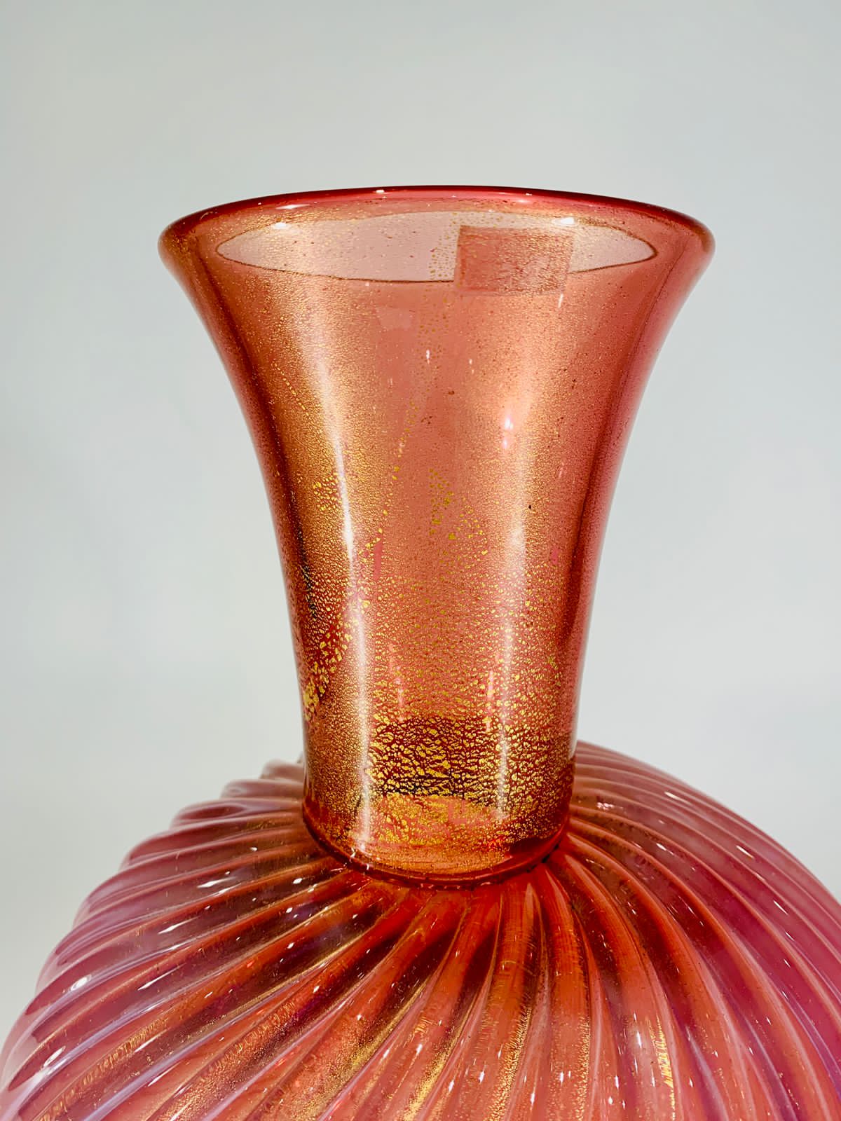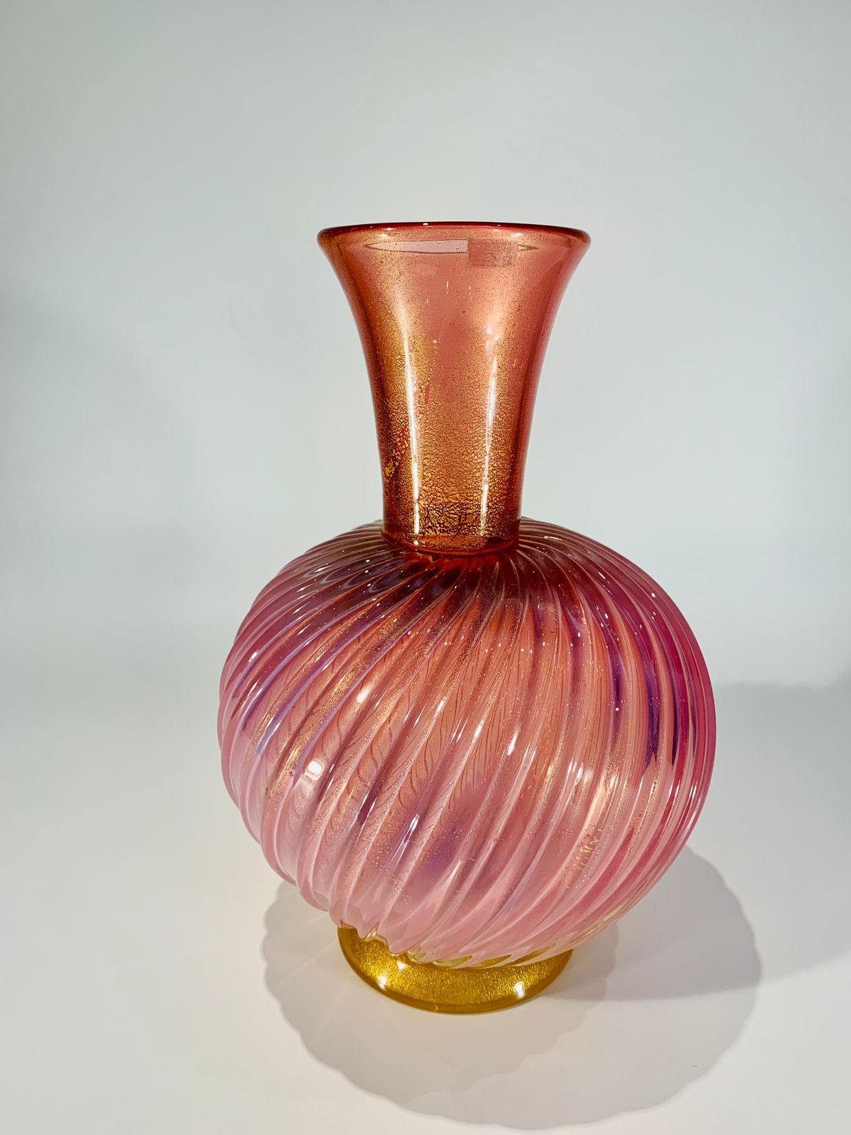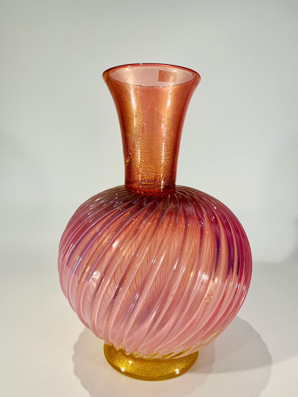 Murano Archimede Seguso 1950 vaso “coronato oro” com partes aplicadas. Peça única.