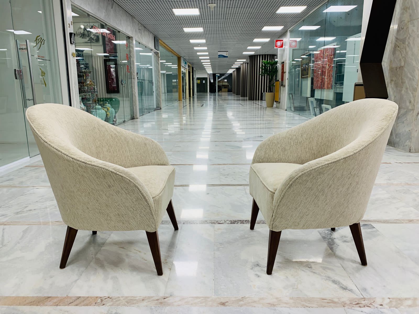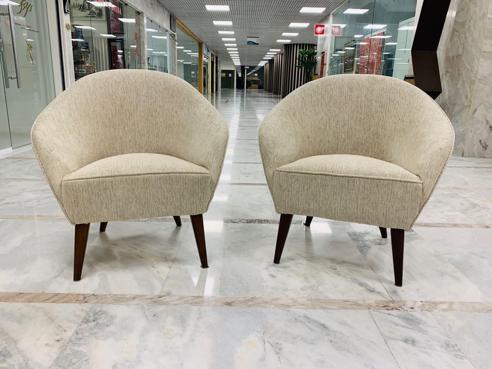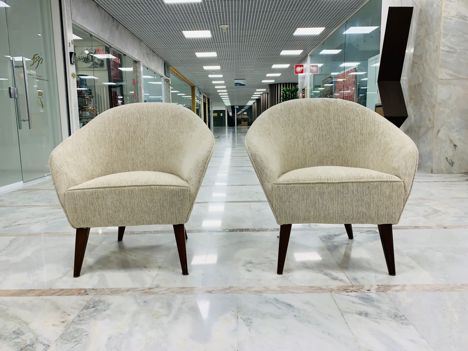 Par de poltronas anos 50 com pés palito em madeira atribuídas. JOAQUIM TENREIRO.