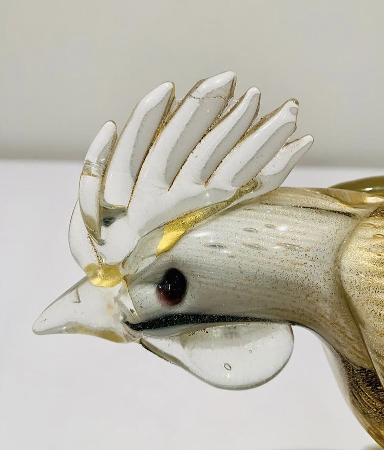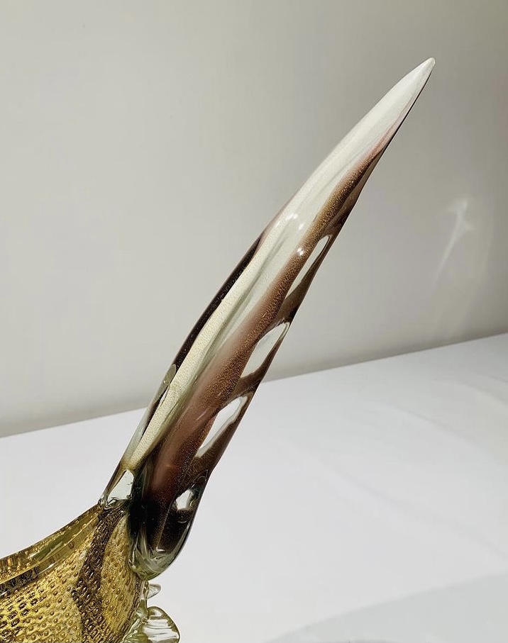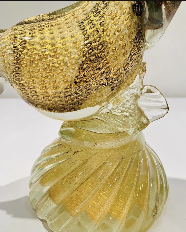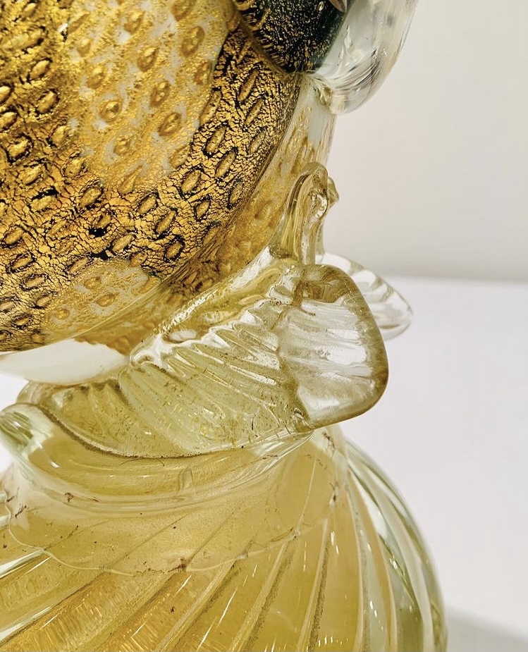 Murano A.BARBINI 1950 Escultura em vidro artístico soprado de Murano com partes aplicadas, bolhas de ar e folha de ouro. Peça única.