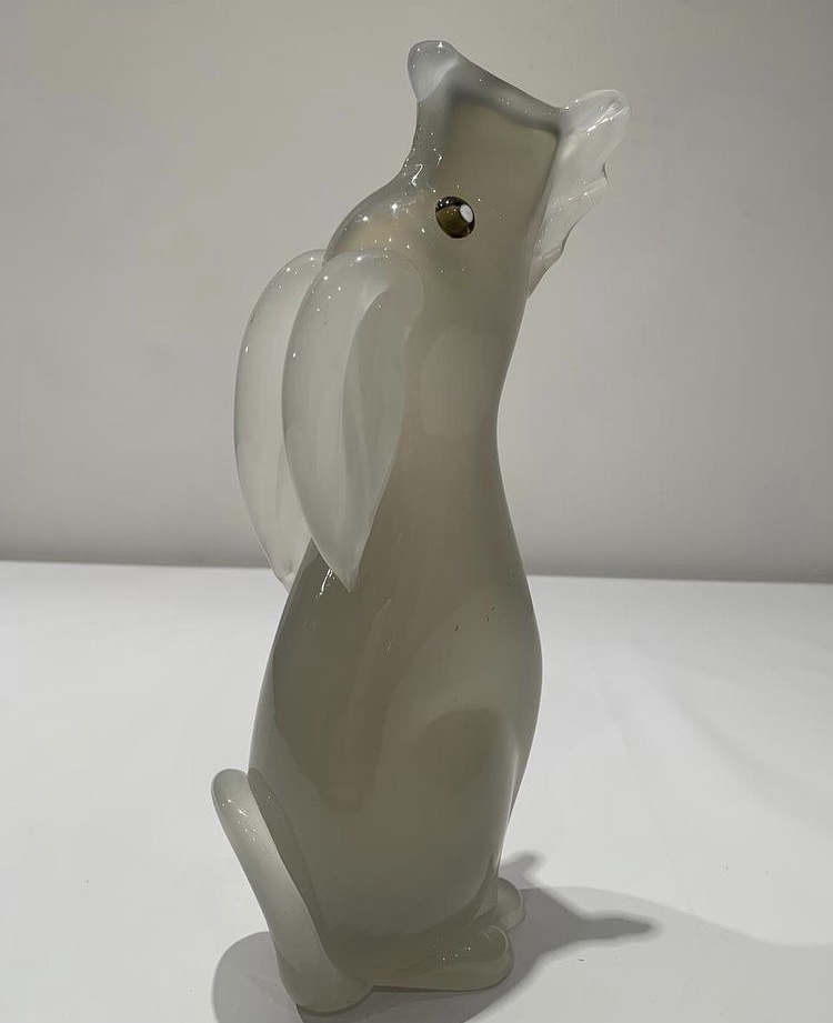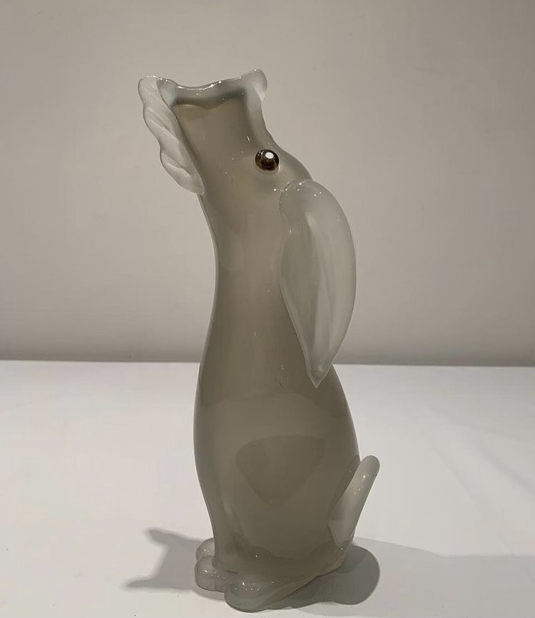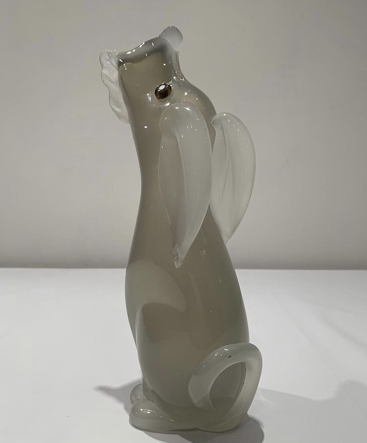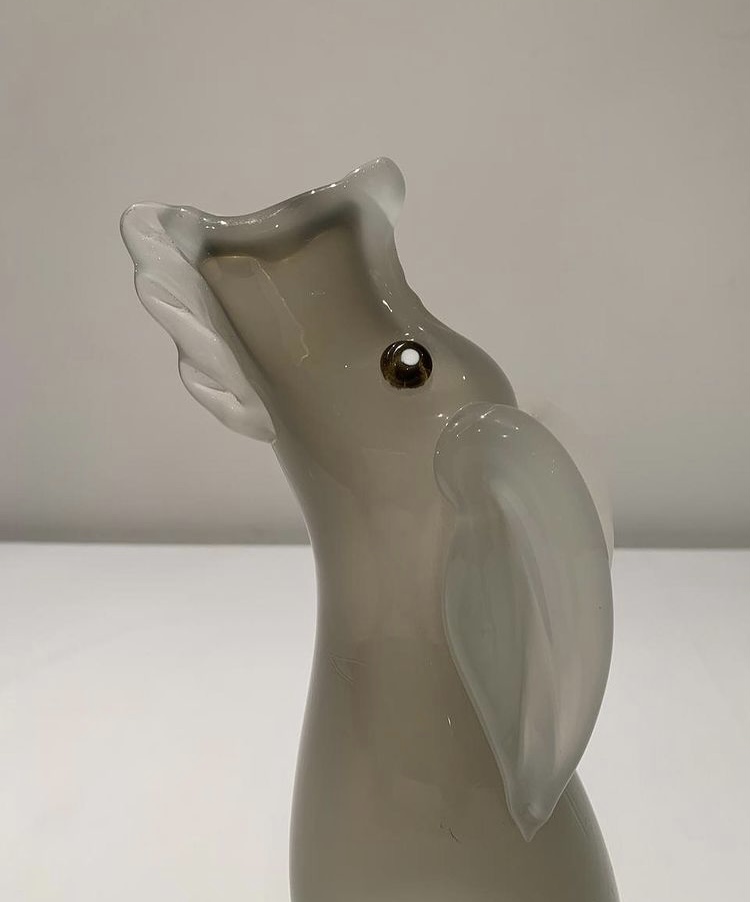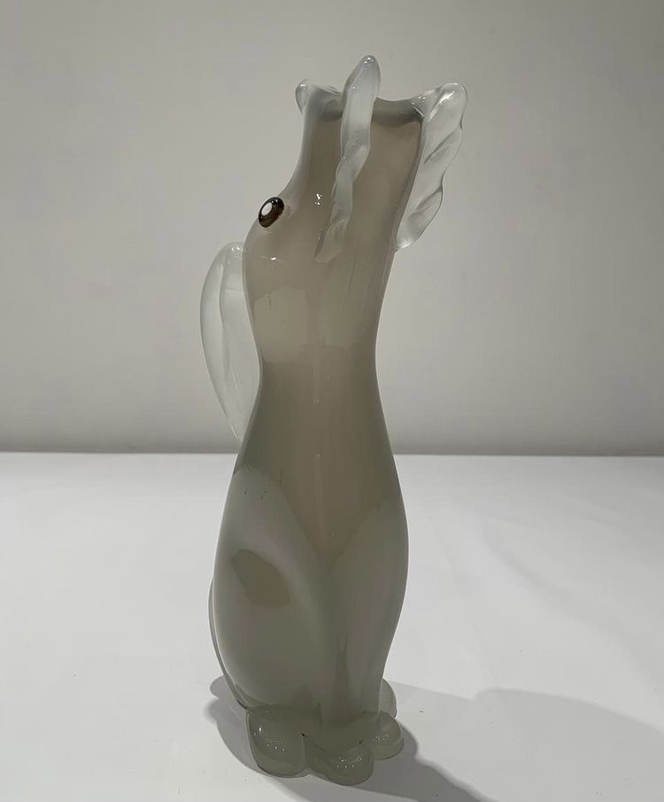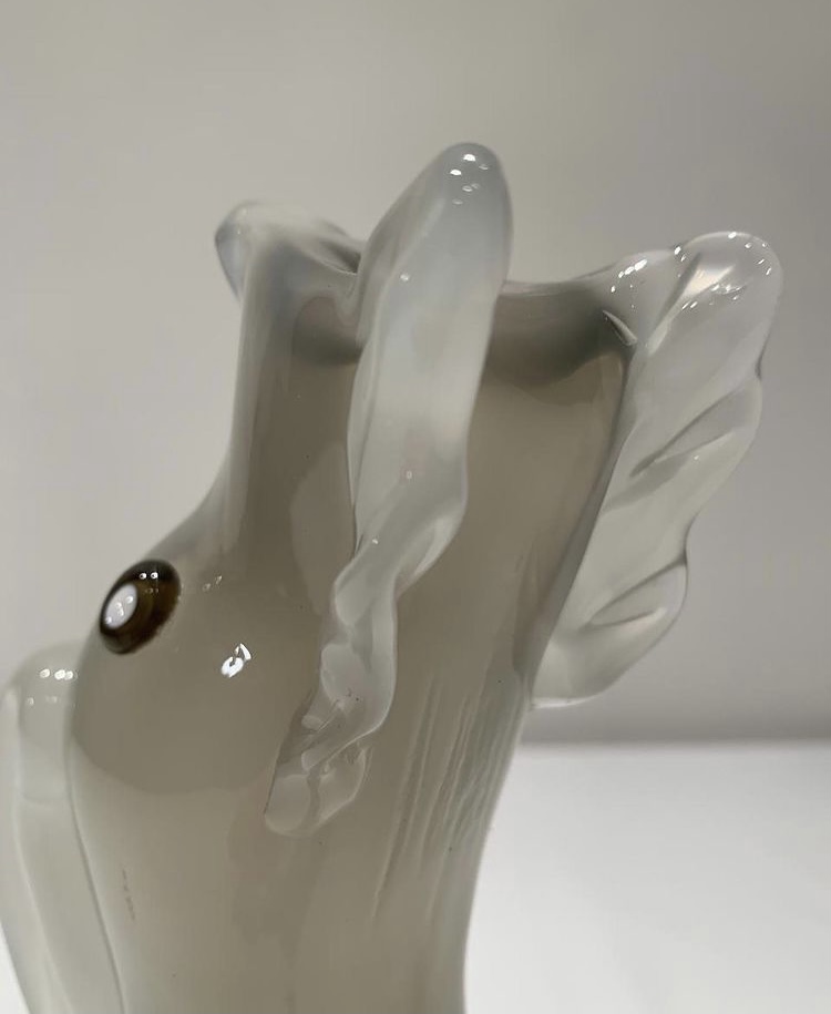 Murano Archimede Seguso 1950 Escultura em vidro artístico soprado de Murano com partes aplicadas em vidro “opalino”, vaso para uma flor.