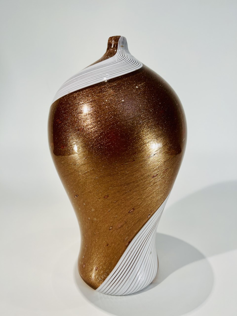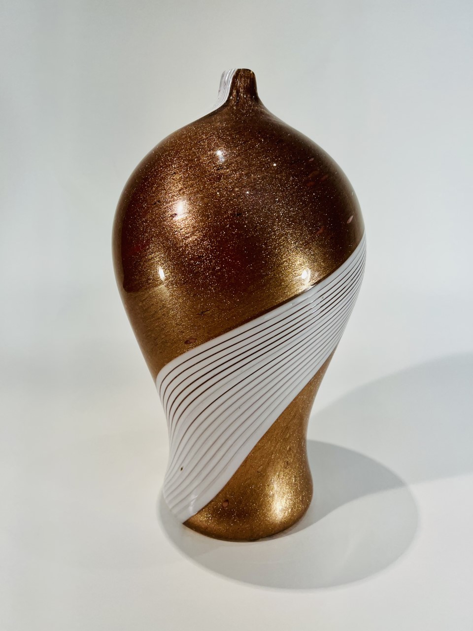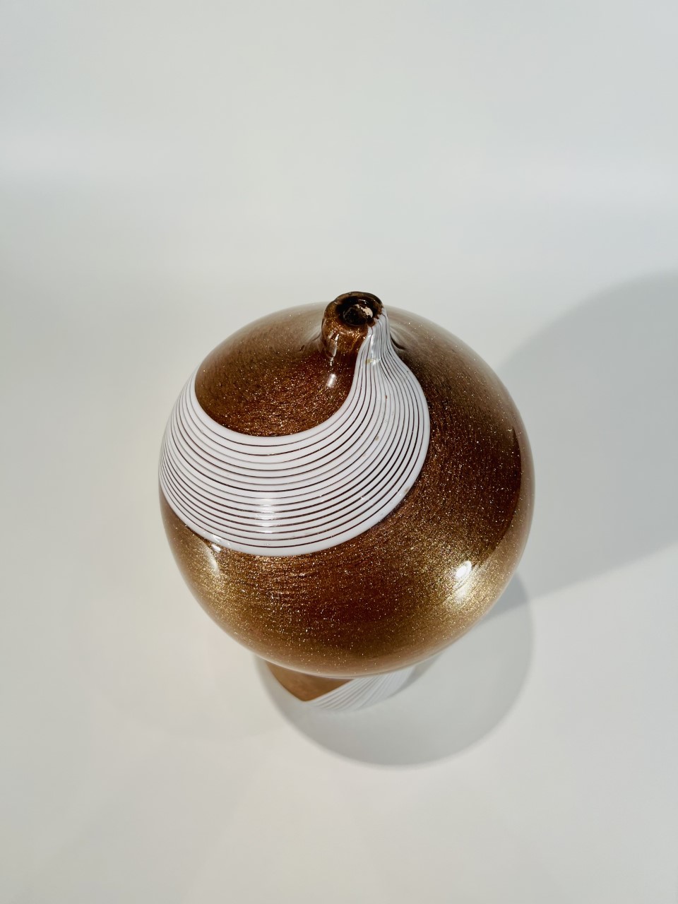 Murano vaso em vidro artístico soprado de Murano com “venturina” desenho de Dino Martens produção Aureliano Toso 1950