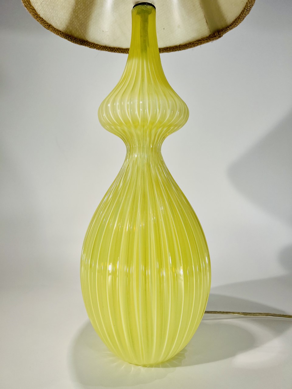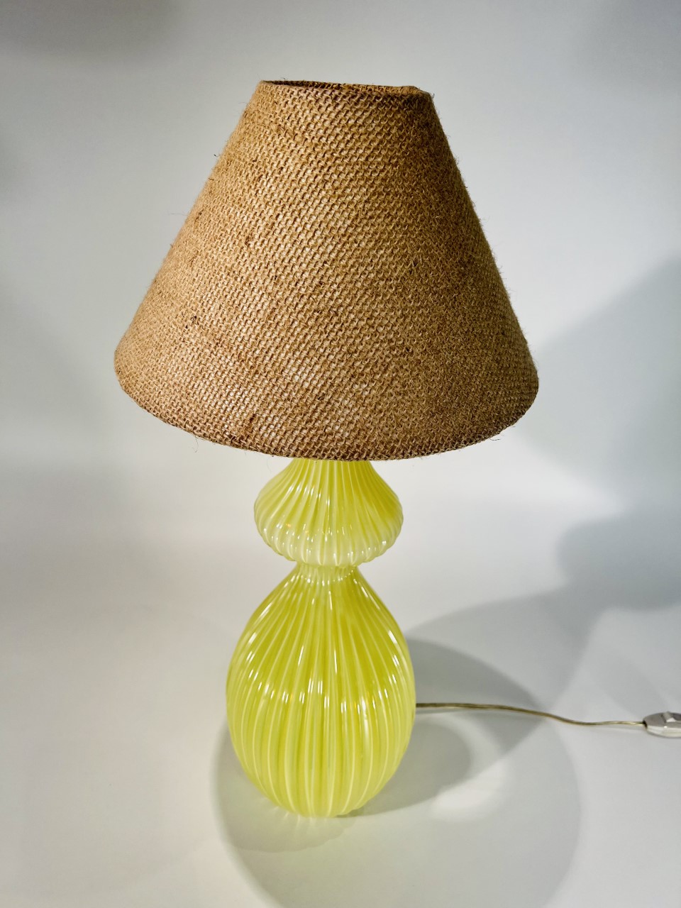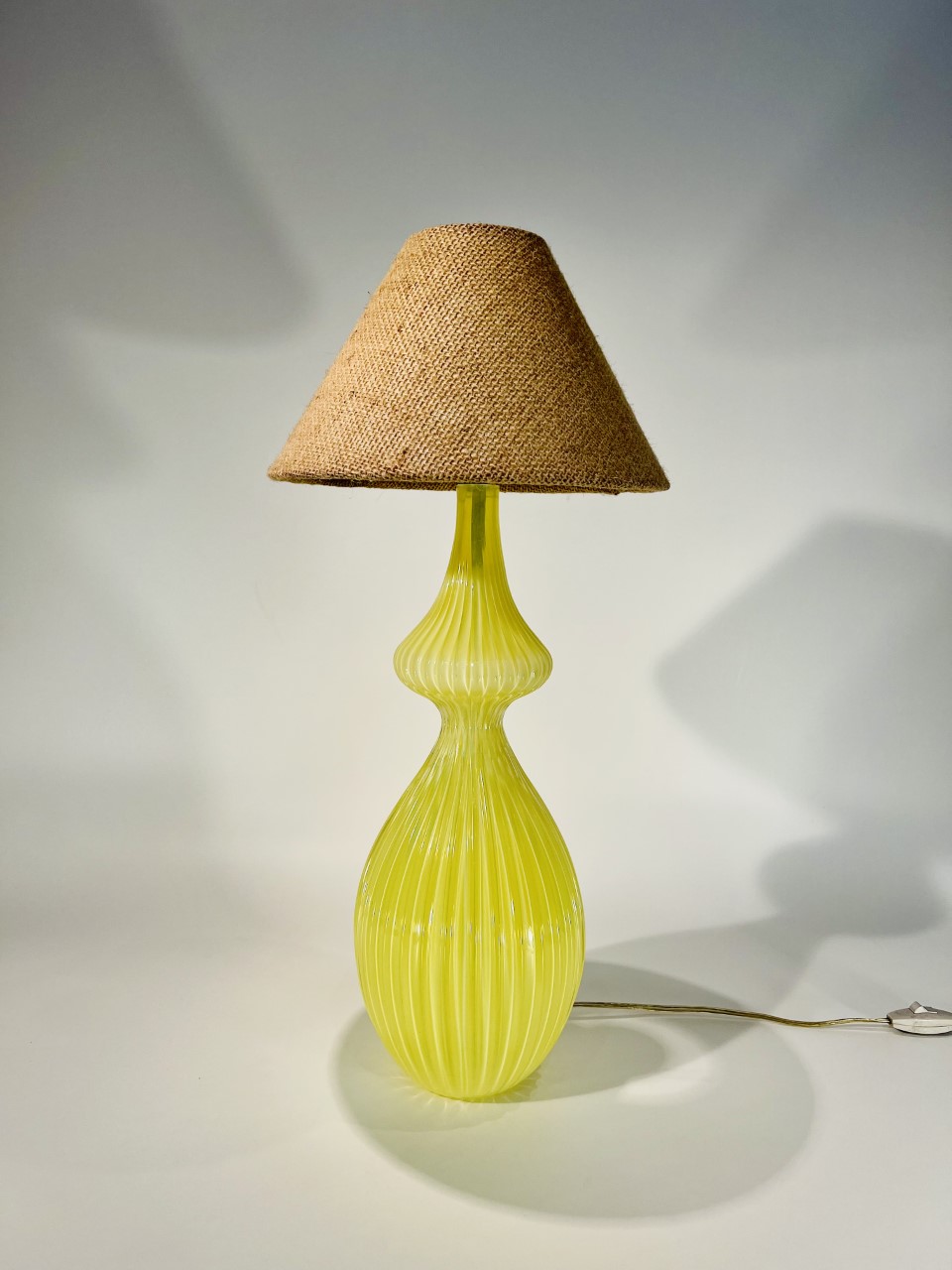 MURANO Luminária de mesa em vidro artístico soprado de Murano “costolato” atribuído a Seguso Vetri d’Arte 1950