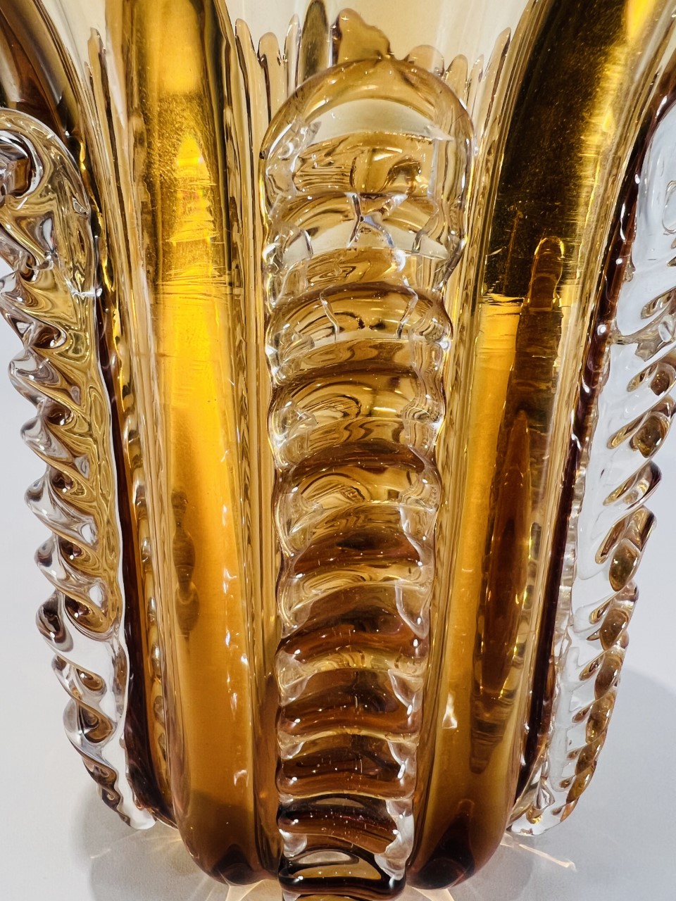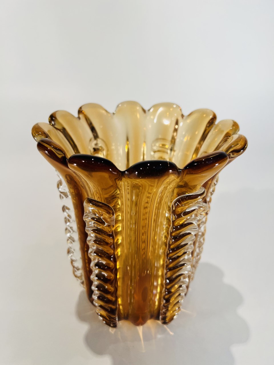 Murano vaso em vidro artístico soprado de Murano com aplicações laterais Archimede Seguso c 1950