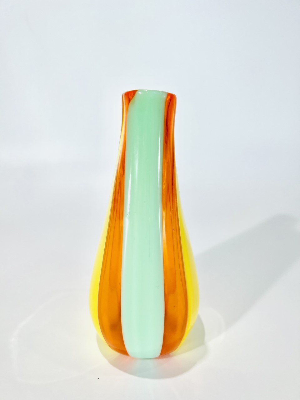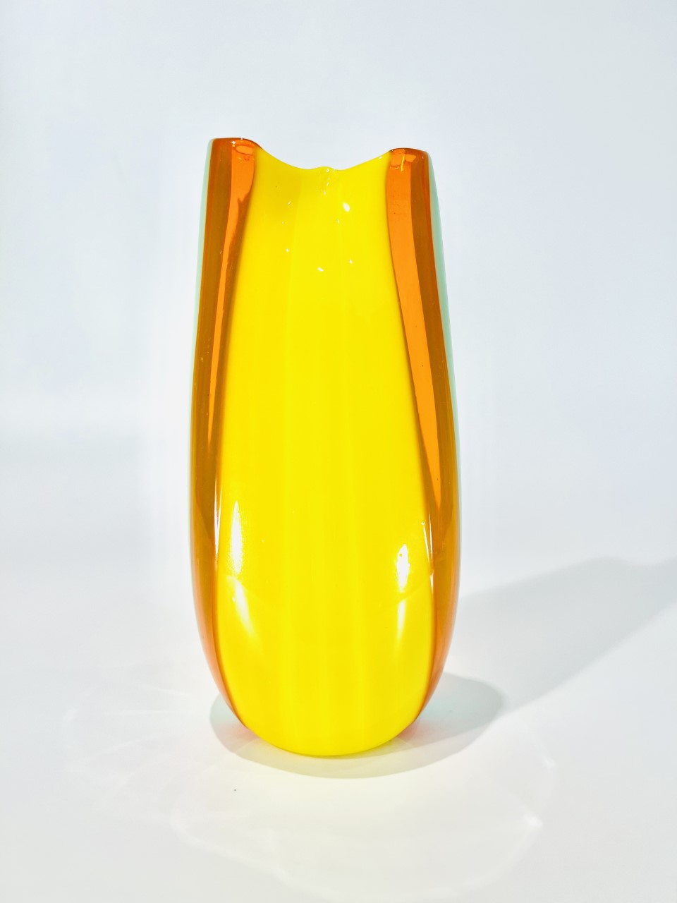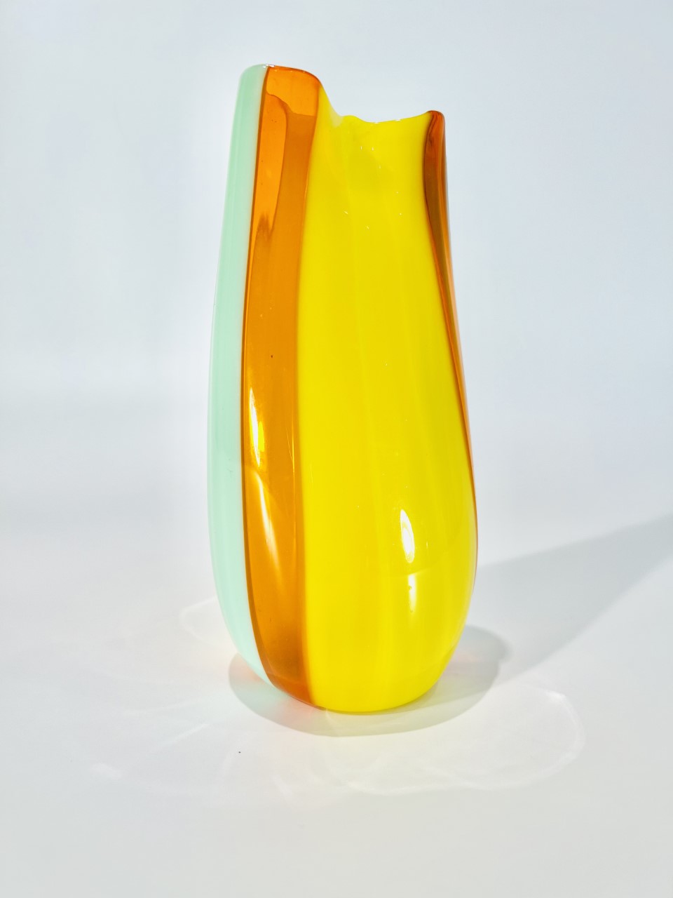 Vaso em vidro artístico soprado de Murano produzido por Fratelli Toso desenho de SILVANNI 1980