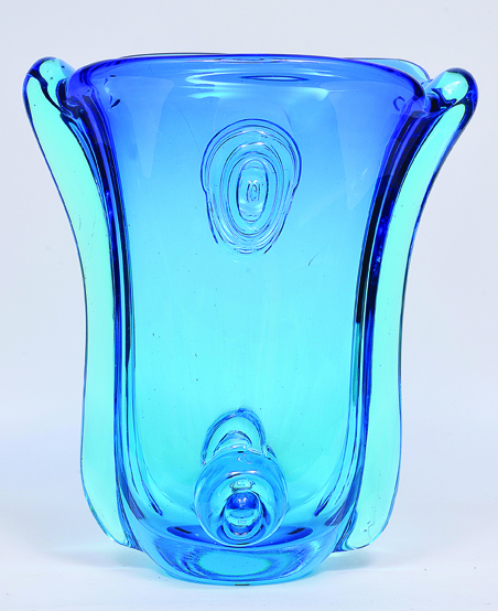 Vaso em vidro artístico soprado de Murano produzido pela Seguso Vetri dArte 1950 com aplicações frontais