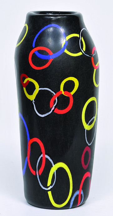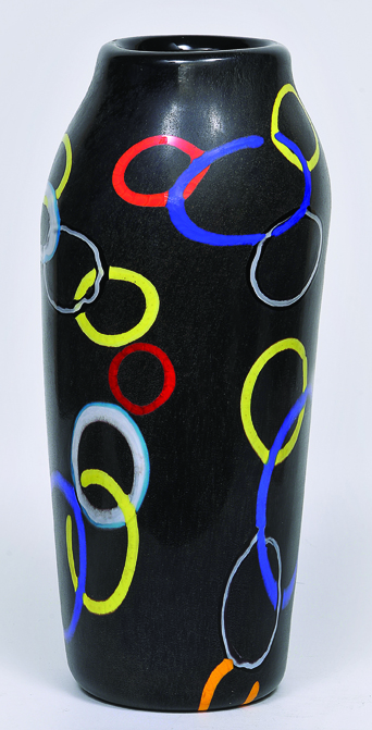 Vaso em vidro artístico soprado de Murano produzido por Ermanno Toso 1953 “Nerox a Cerchi Concatenati”