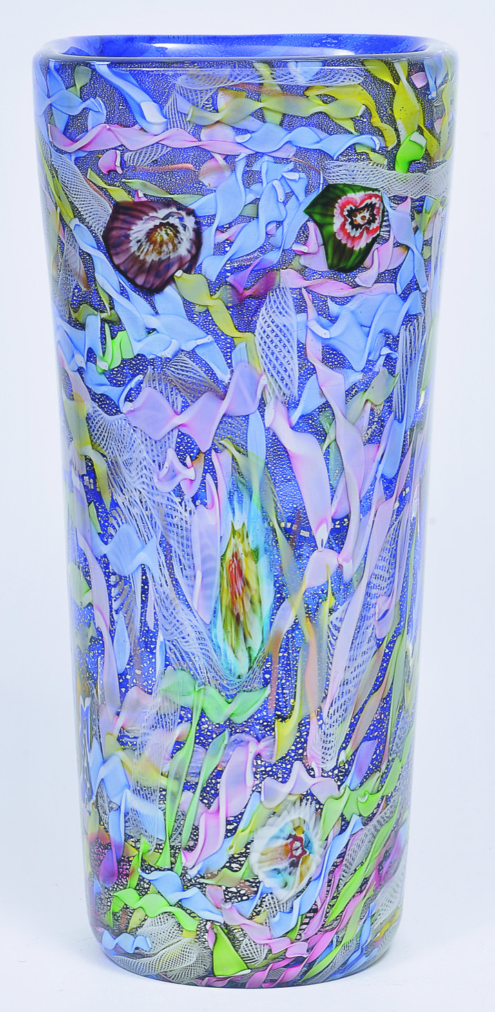 Vaso em vidro artístico soprado de Murano produzido por AVeM 1950 “Bizantino”