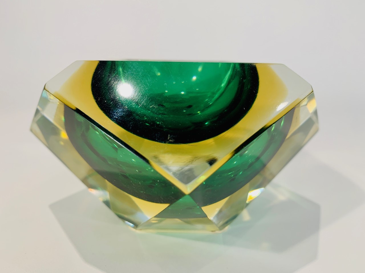 Bowl em vidro artístico soprado de Murano geométrico atribuído a VENINI 1950