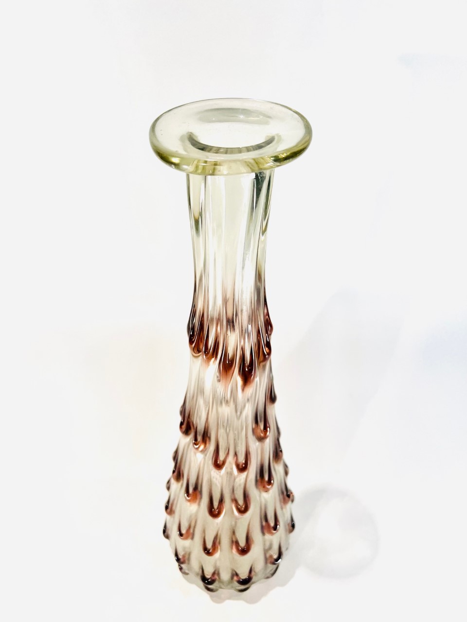 Vaso em vidro artístico soprado de Murano iridisado e repuxado atribuído à Barovier&Toso 1950