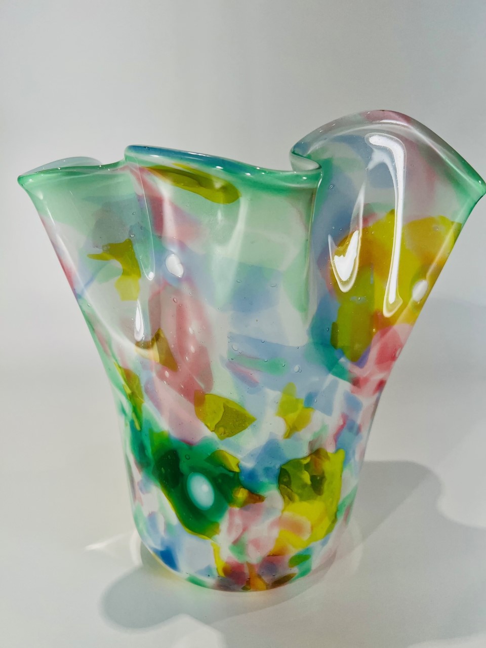 Vaso em vidro artístico soprado de Murano atribuído a Dino Martens por Aureliano Toso circa 1950 “Fazoletto”