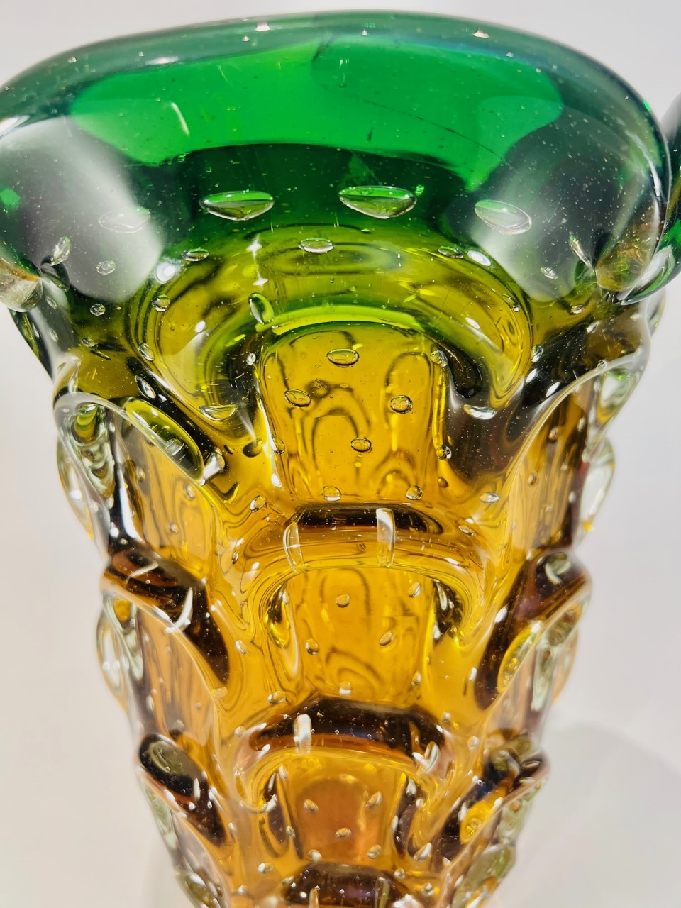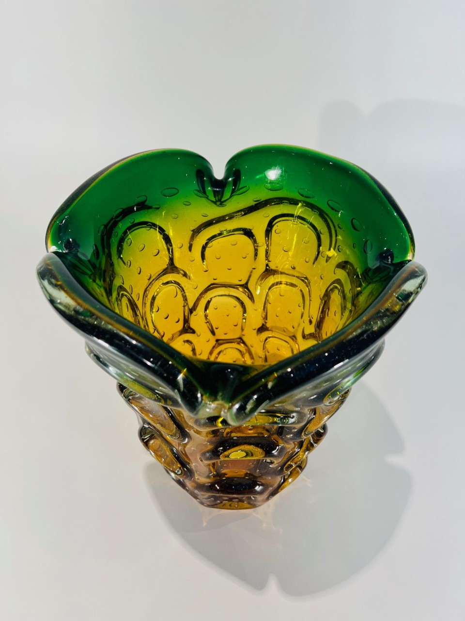 Murano FRATELLI TOSO 1950 representando vaso com repuxados verticais e bolhas de ar. Peça única.
