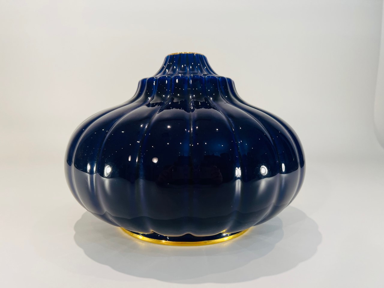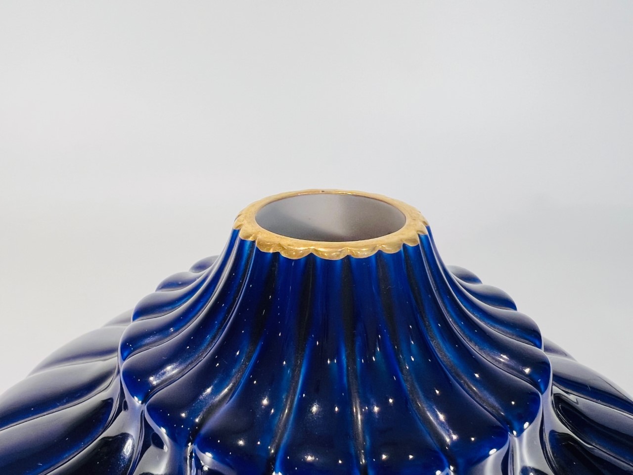 Vaso Art Déco em porcelana Sevrés circa 1930 em azul cobalto com acabamento em ouro
