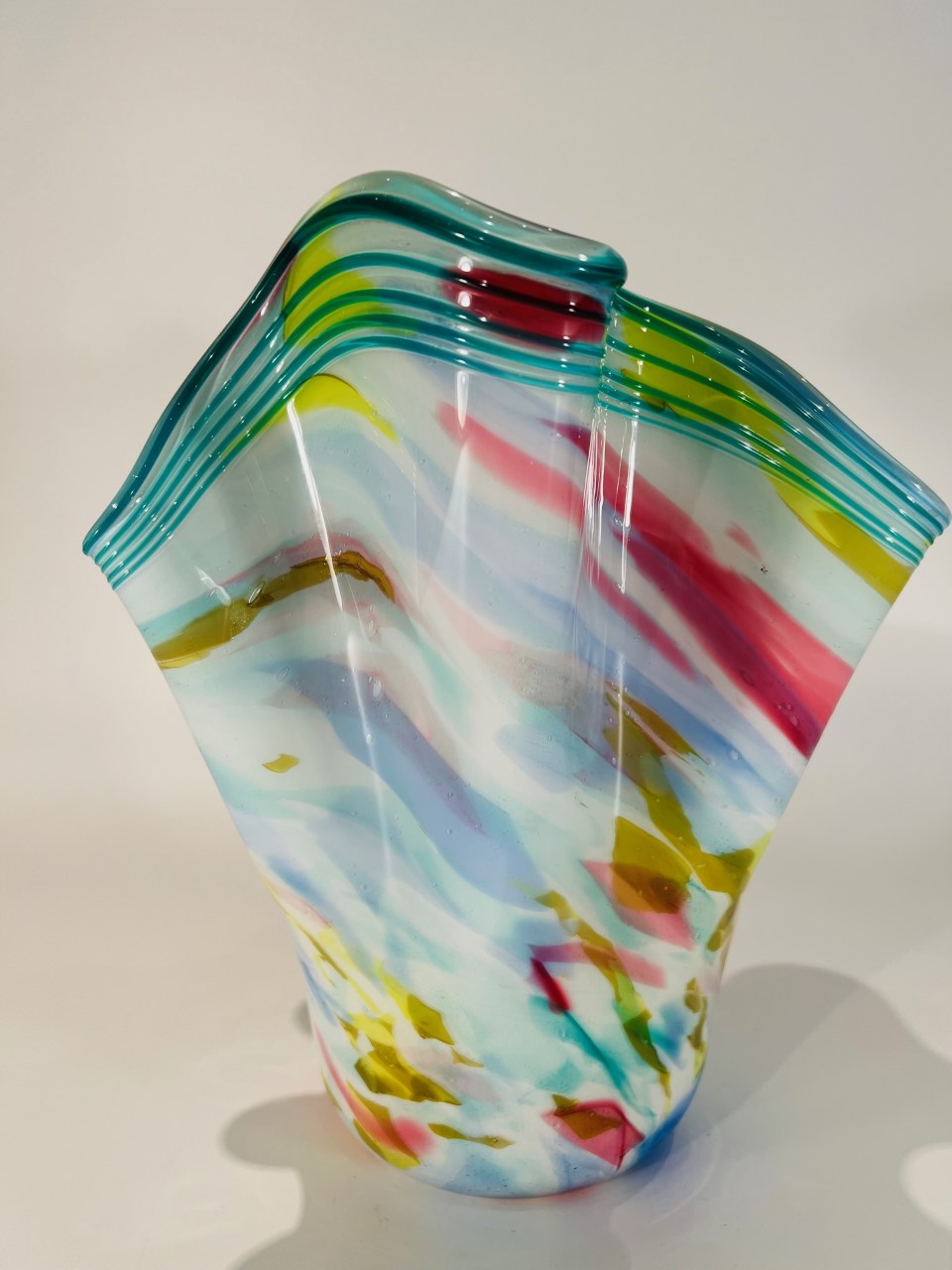 Vaso em vidro artístico soprado de Murano com vidro aplicado atribuído a AURELIANO TOSO 1950 “fazoletto”