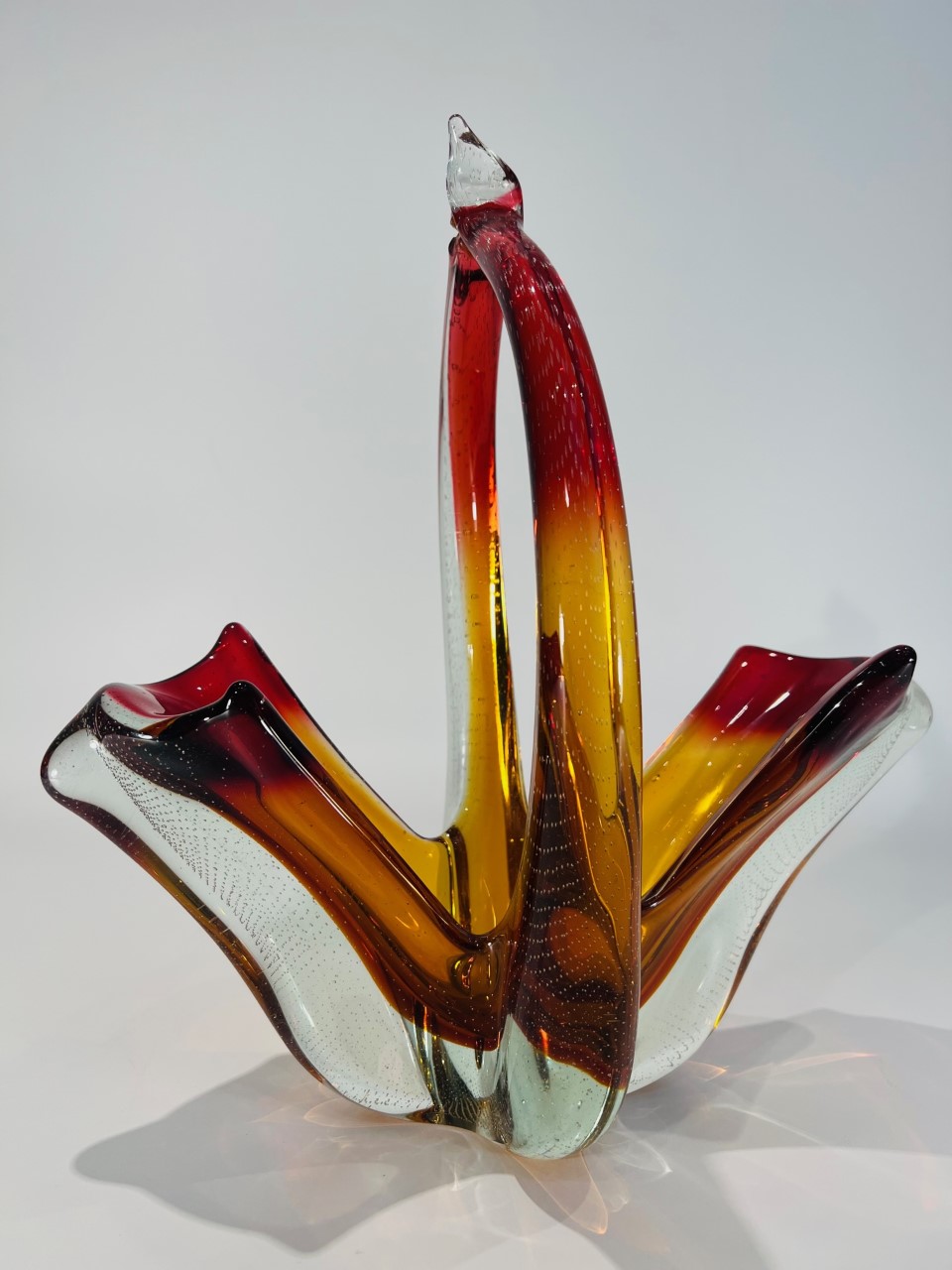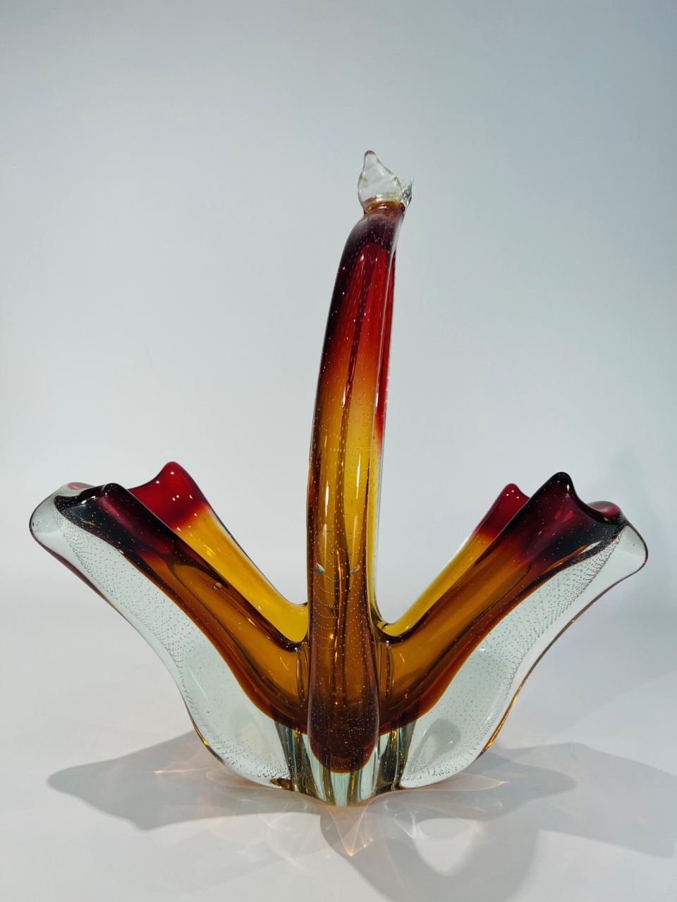 Cesta em vidro artístico soprado de Murano produzido por Itamo Pusteto circa 1950