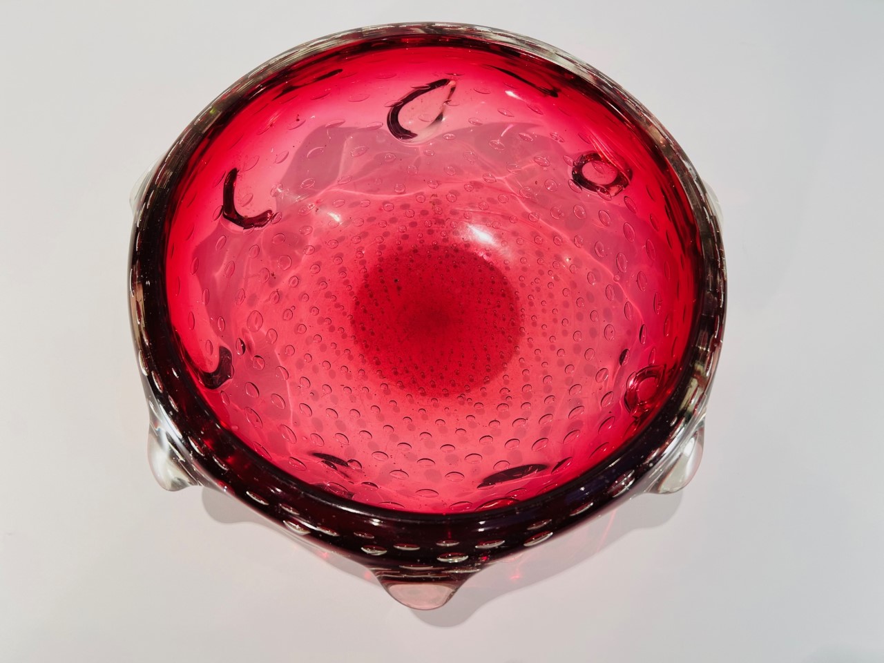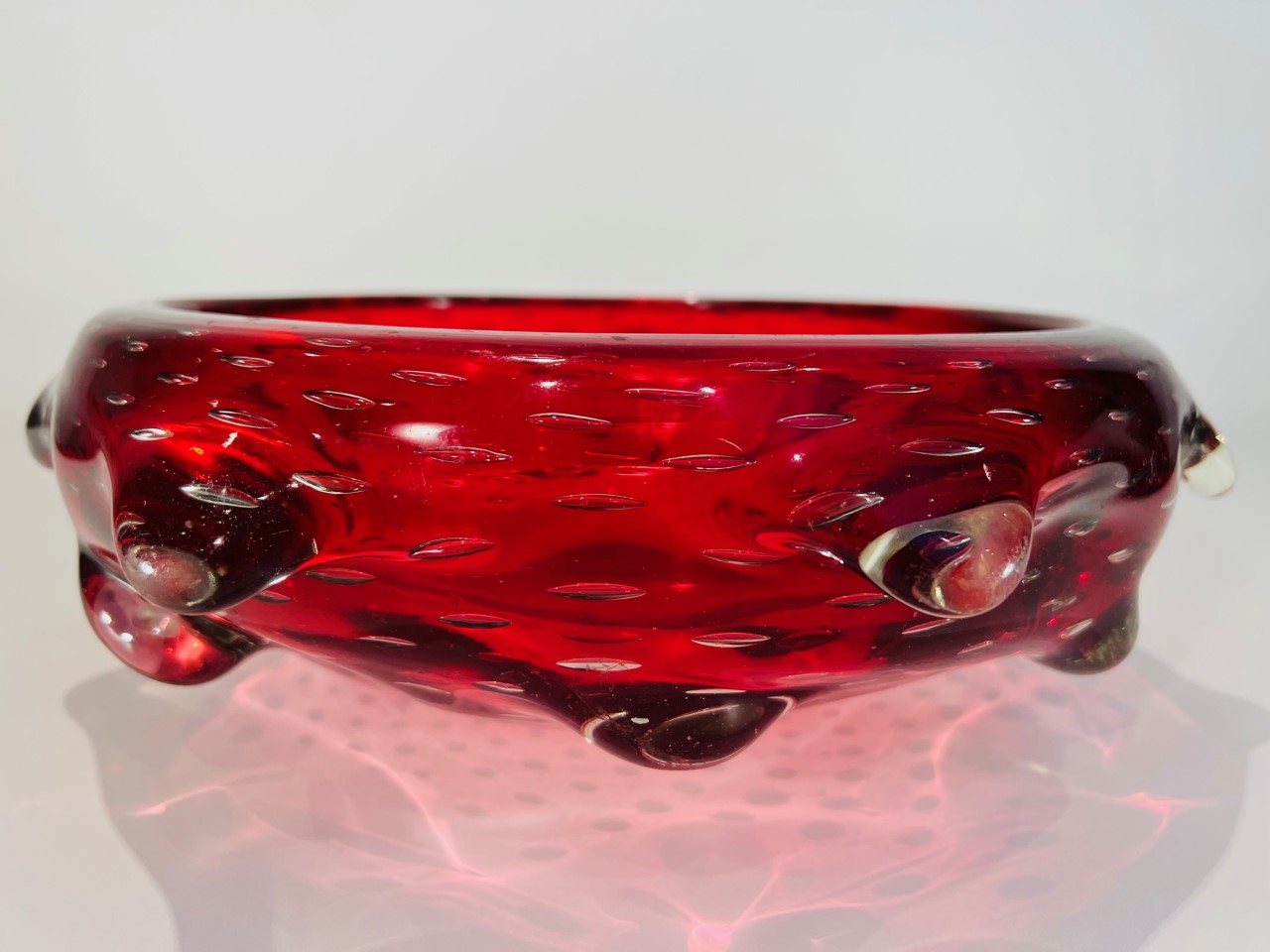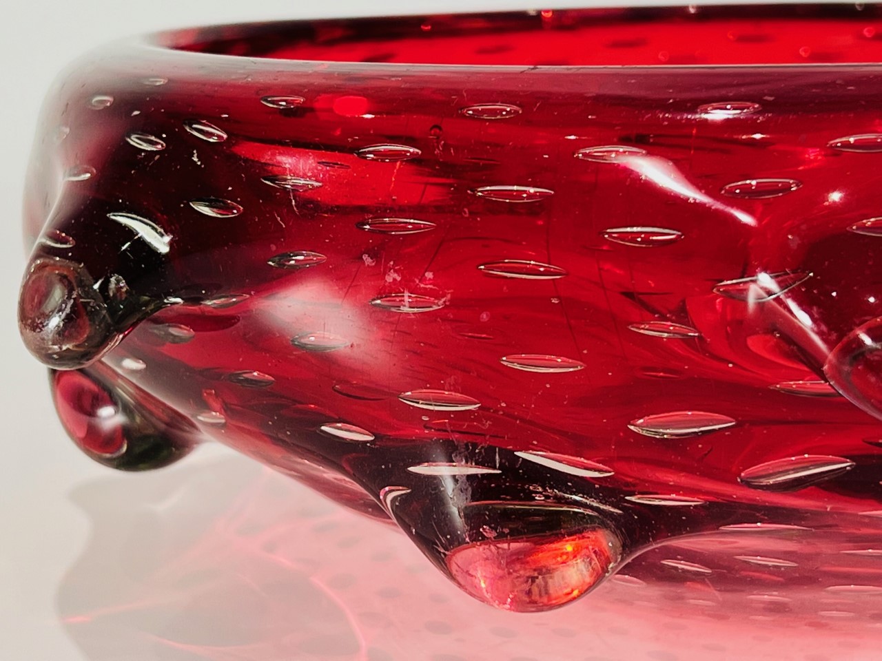 Centro de mesa em vidro artístico soprado de Murano atribuído a Aureliano Toso circa 1950 com bolhas de ar