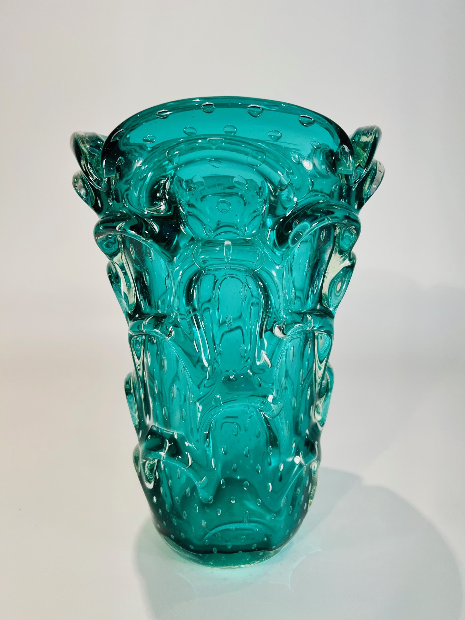 Murano FRATELLI TOSO 1950 representando vaso com repuxados. Peça única.