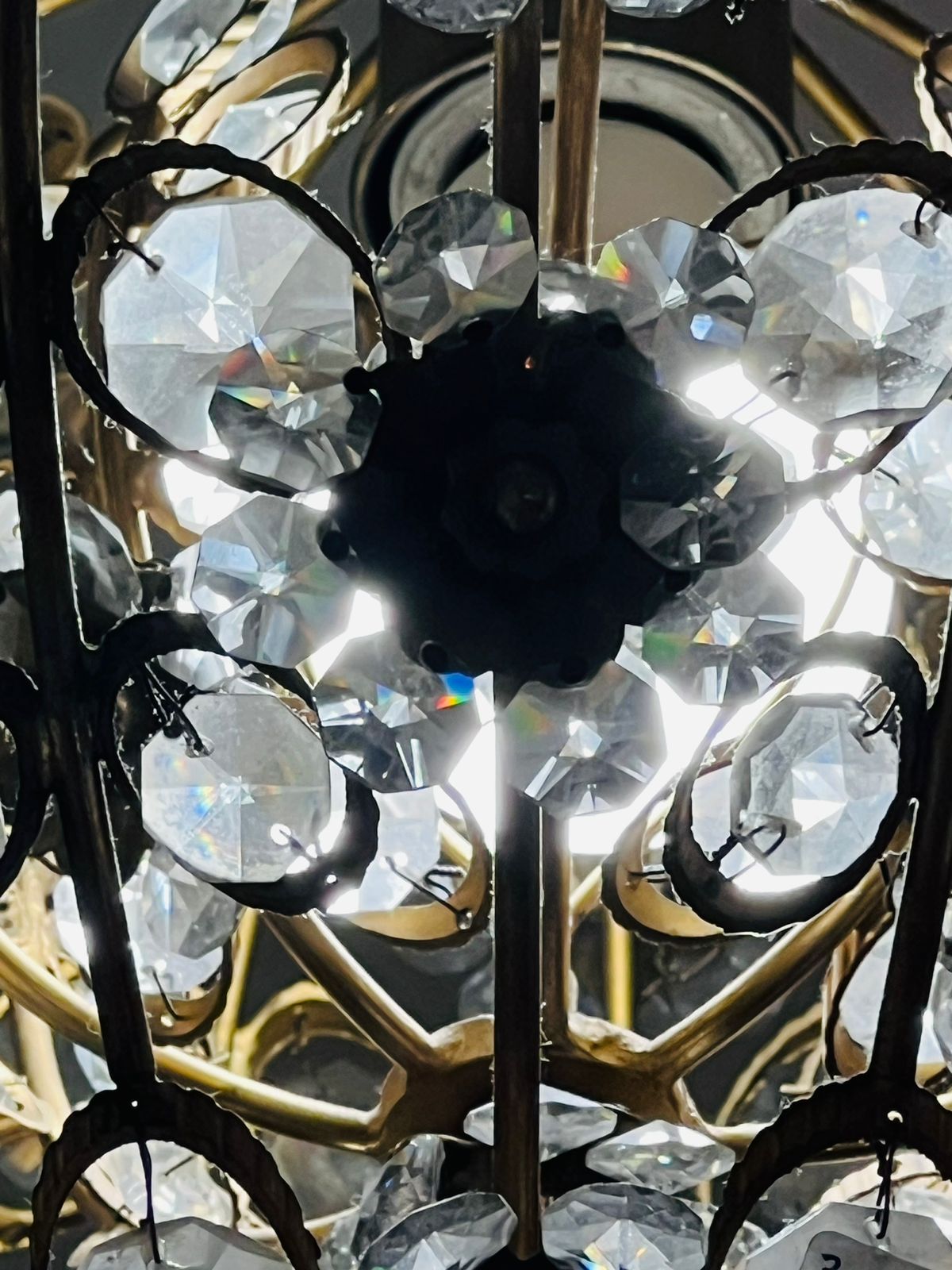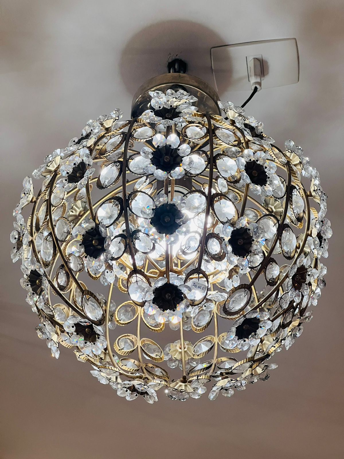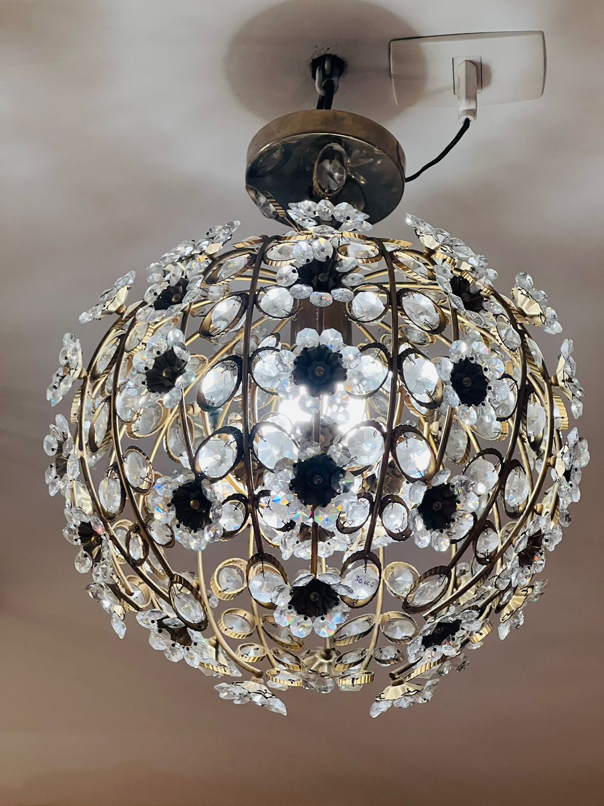 Maison Jansen - Lustre francês circa 1970 em metal e cristais para uma lâmpada.