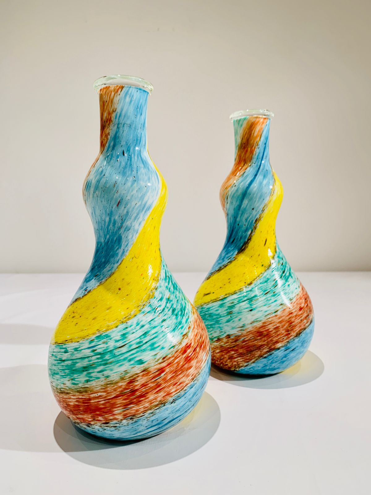 Murano Dino Martens por Fratelli Toso 1950 par de vasos em vidro artístico soprado de Murano com pigmentos e borda aplicada. Peça única.